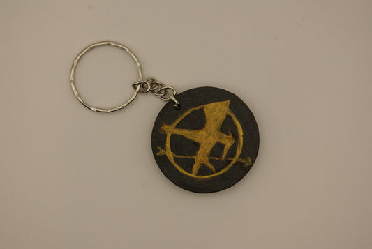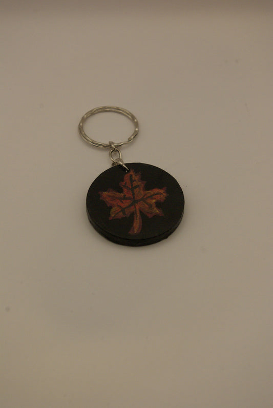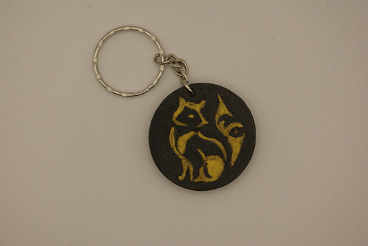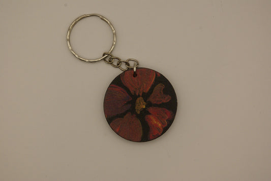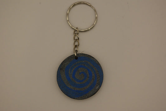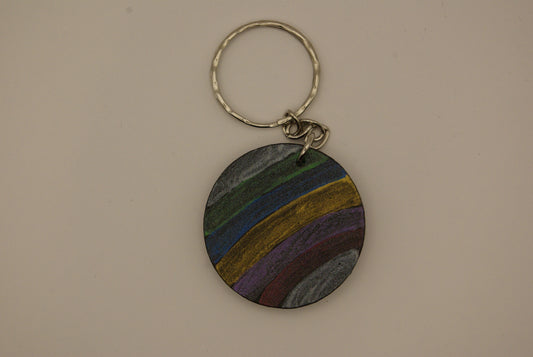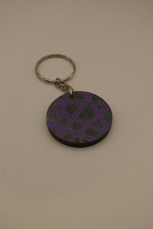 Porte-clefs en bois. Peint à la main en encre métallisée. 3.5cm de diamètre.