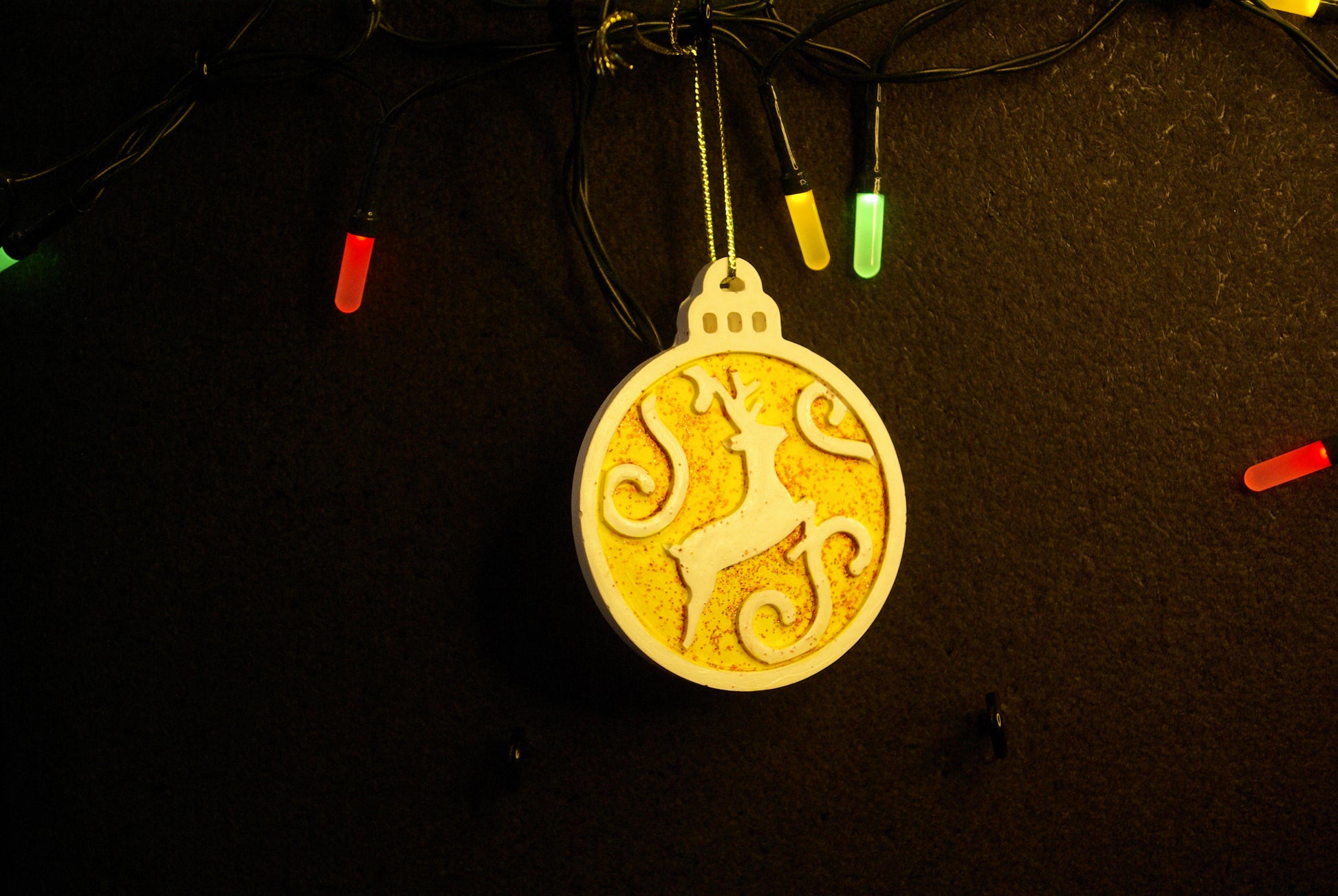 Une petite boule de Noël à décor de cerf. Peinte à la main.