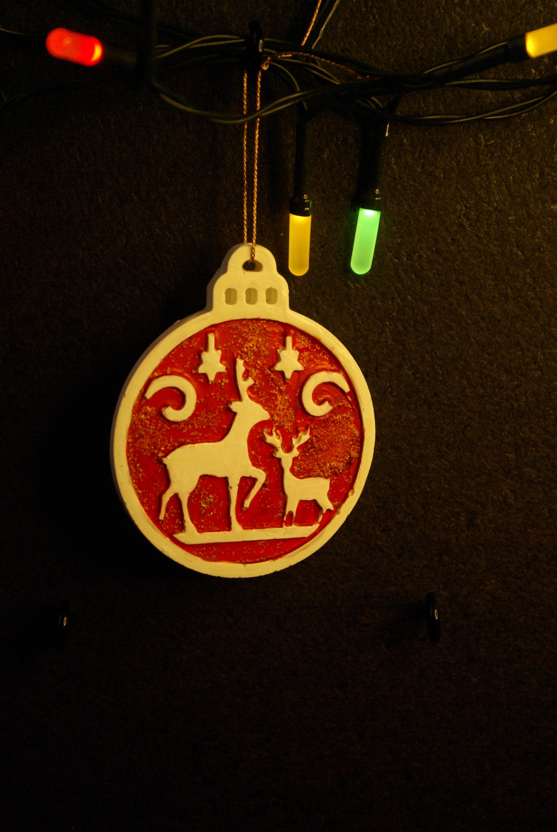Une petite boule de Noël à décor de biche. Peinte à la main.