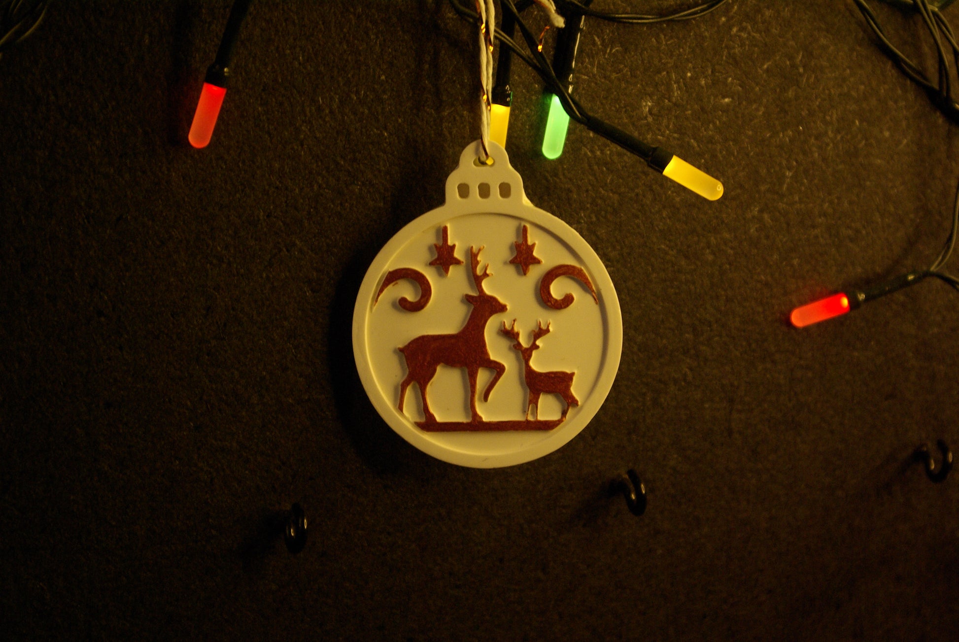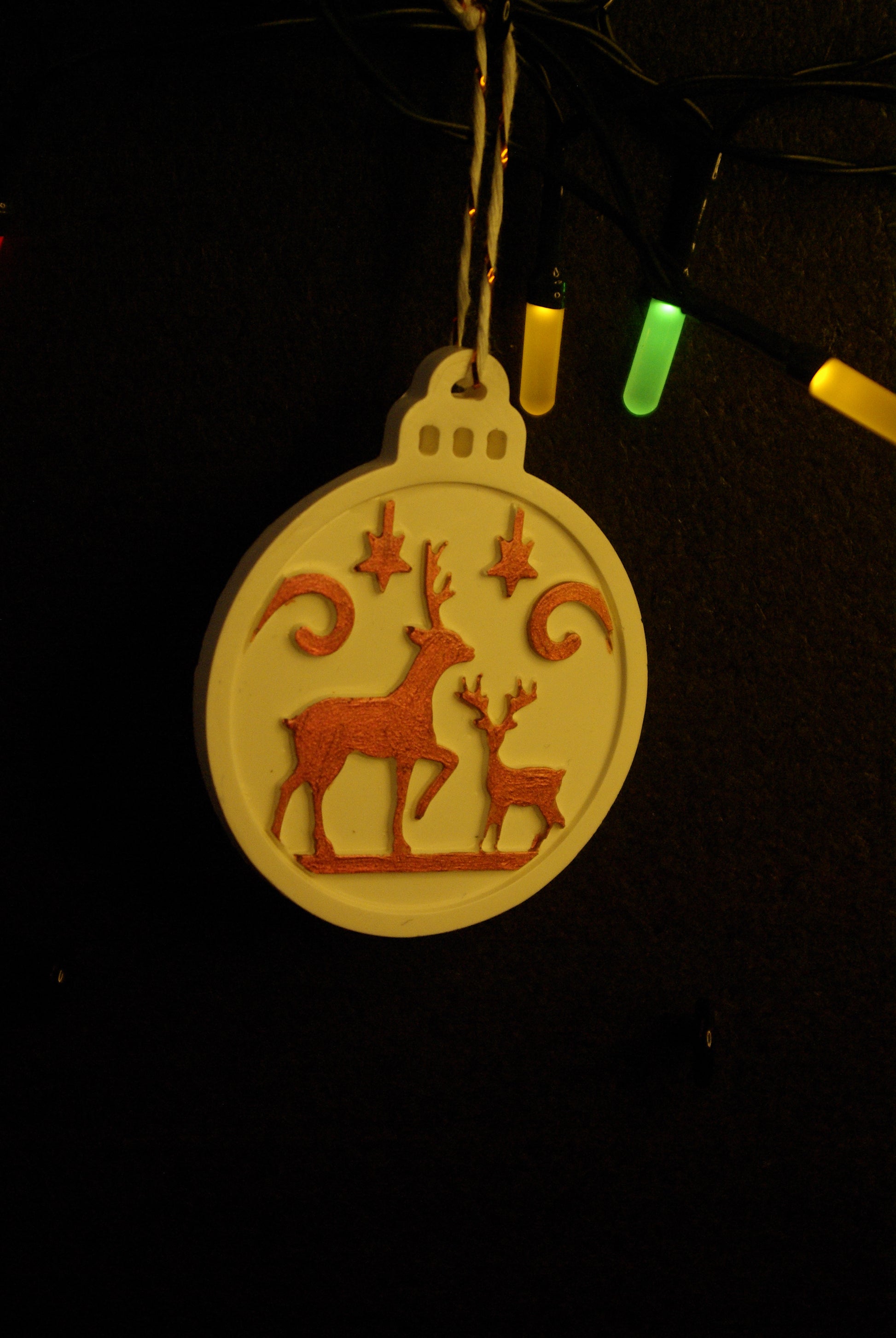 Une petite boule de Noël à décor de biche. Peinte à la main.